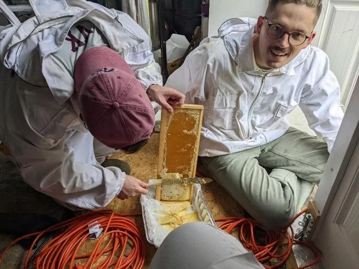 We are a multi-generational collection of bee keepers across Southern Maine who love keeping bees. We are all different, but the two things that we have in common are that we love honey bees and we want to give the nuisance bees in your life a happy home. We have the skills and experience to grab passing swarms or to fully remove established colonies.